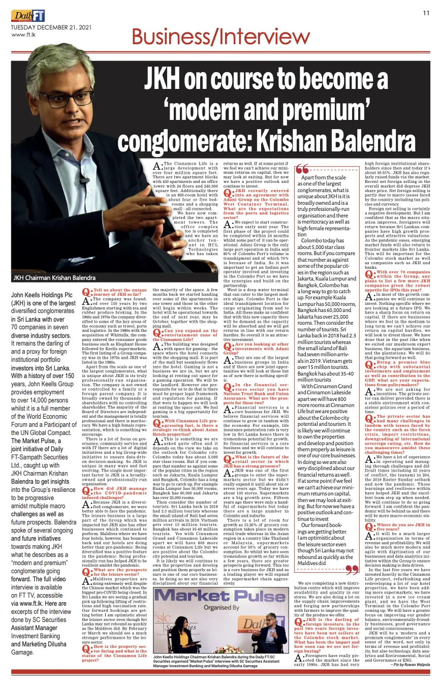 JKH on course to become a modern and premium conglomerate: Krishan Balendra